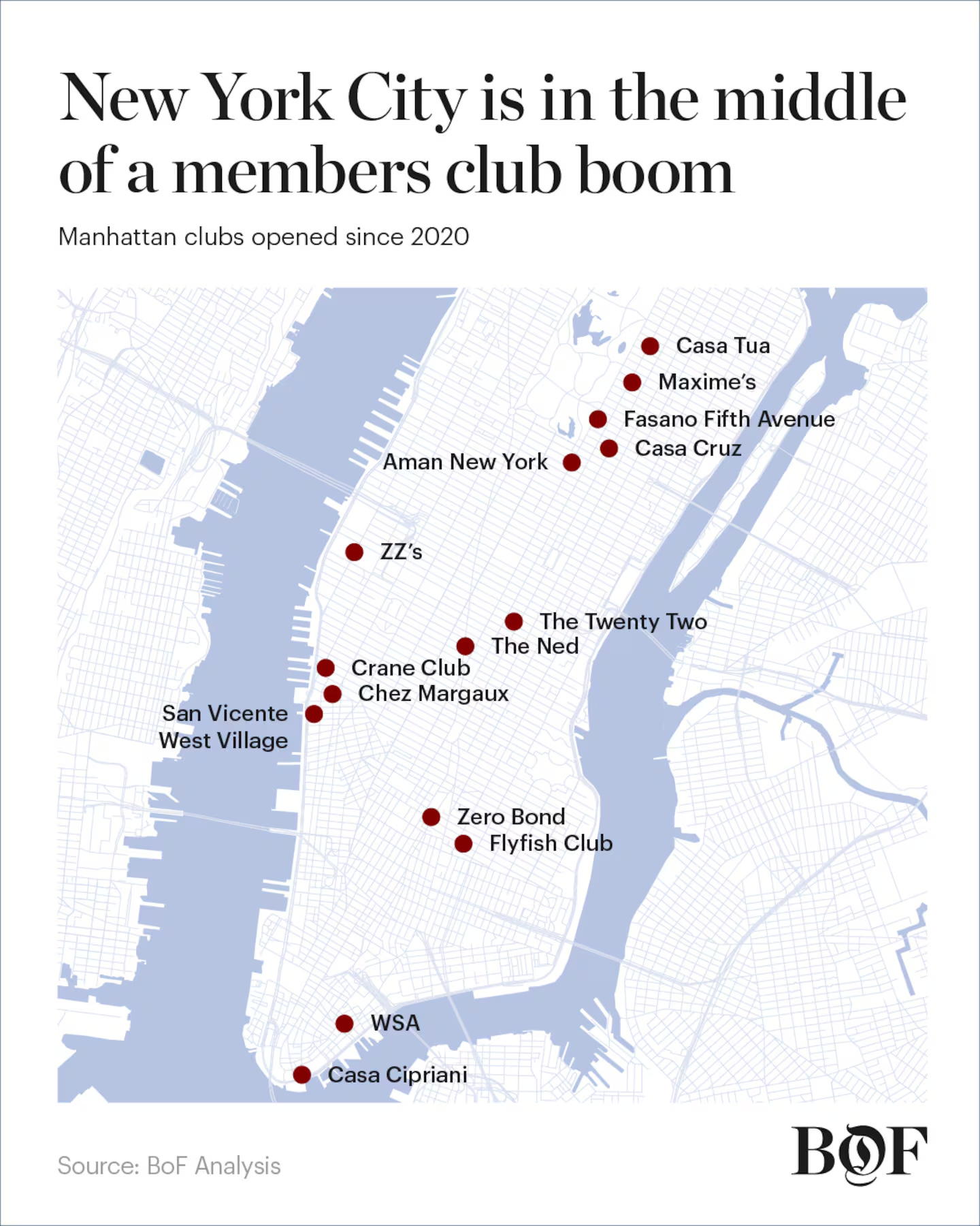 MATT: Now, let’s talk members’ clubs, because while they’re part of this evolution, they’re also a bit stuck. Business of Fashion recently published an article titled “How to Make a Members Club Work in New York”, discussing this exact issue.