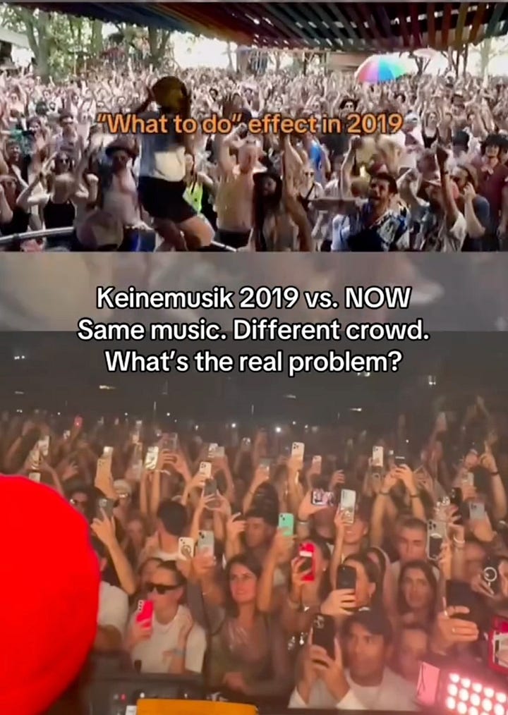 MATT: Social media changed everything, and not in a good way. People started chasing and sharing the vibe so much that every place became desperate for attention. Entire booths on their phones instead of dancing or talking. I just saw a TikTok comparing two Keinemusik sets: 2019 vs. 2025 (Keine Musik). 19’ no phones, people going crazy, just a full vibe. 25’ a WALL of phones, no one dancing, everyone just projecting the fact of being there, without actually being there.