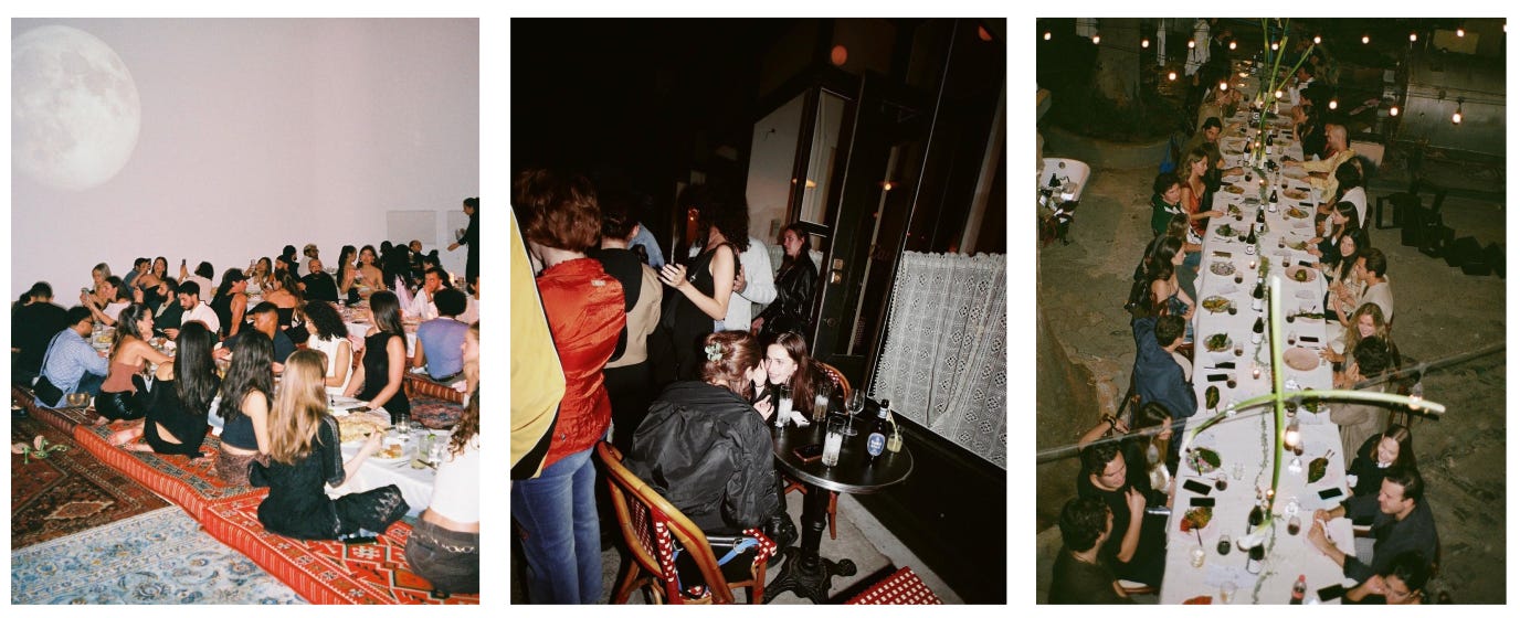 Georgia agreed, saying she’d much rather be in a room of 50–100 than 500. But hosting that kind of space in New York isn’t easy. “Even if you're making $200k a year,” she said, “you’re still not hosting a dinner for 20 in your apartment.” The city’s shrinking spaces have changed how people socialize. The dinner party might be ideal, but the format has to evolve.