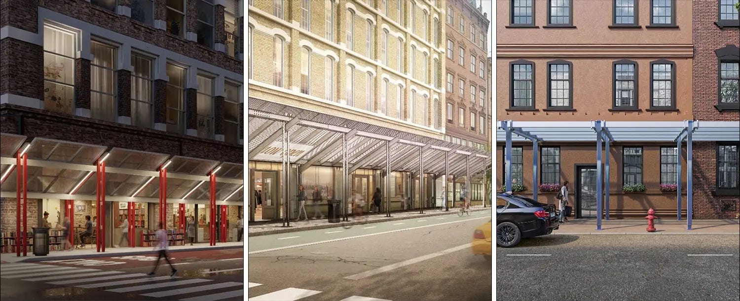The sidewalk shed, ubiquitous with New York City, is finally getting a glow up. This is something that can find bi-partisan support, tearing down the ghastly scaffolding that plagues our city. NYC has unveiled new scaffolding designs, along with new laws going into effect in 2026 to enforce the ‘timely façade and construction work’