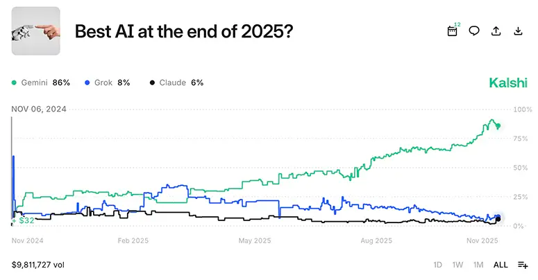 Last quarter it was Grok, now its Google’s Gemini pulling in front. At the beginning of the year there was a lot of conversation around Google’s search getting decimated by chatGPT, google’s done a solid job of staying in the game, now pulling ahead.