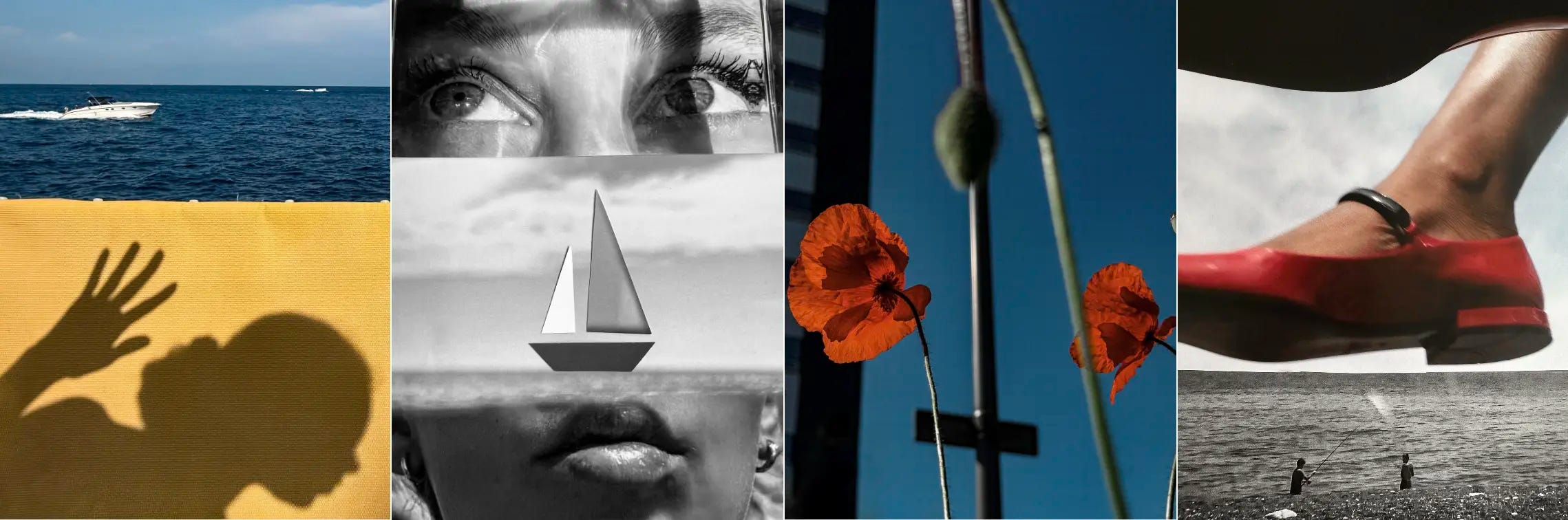 I print my photographs, lay them out across the floor, cut them by hand, and rebuild them piece by piece. There is something grounding in touching the paper, in rearranging shadows and silhouettes, in literally reconstructing my own images.