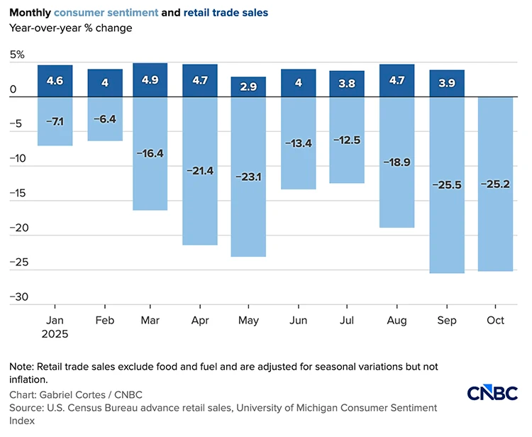 In November, the University of Michigan’s Consumer Sentiment Index was gloomier than the depths of 2008 and worse than June 2022 when inflation peaked at 9%. Basically our vibes were some of the worst in the index’s history.