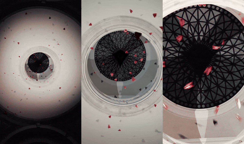 The inaugural commission by MSCHF, titled 20,000 Variations On A Paper Plane In Flight, ran on the hour for three days following the opening.