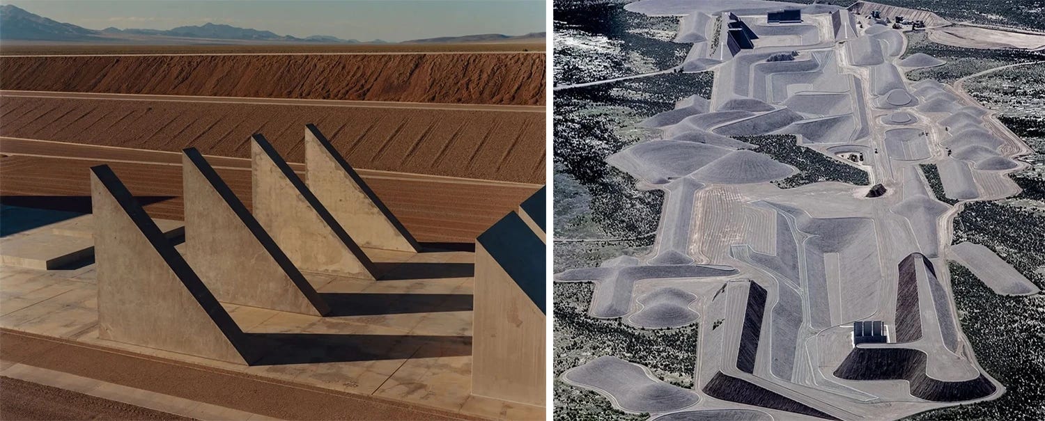 What Kanye was building in Cody, heavily influenced by Heizer. I’d watch bulldozers endlessly building mounds, excavating queries in this similar reconstruction of rubble.